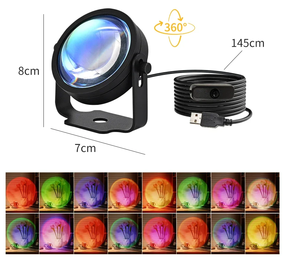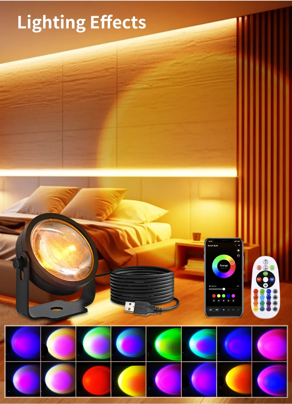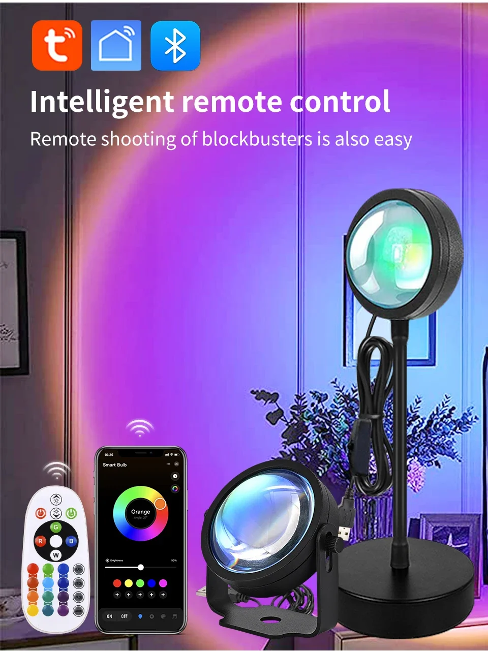 Smart Sunset Lamp Tuya USB Sunset Projector Light RGB Smart Life APP Remote For Room Photography Background Decor Lighting